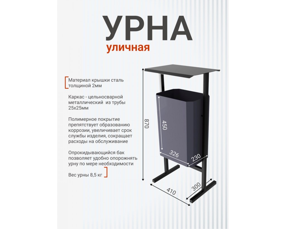 - Общие габариты урны: ДШВ 41 x 30 x 87 см