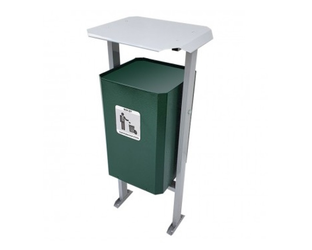 Урна уличная Эко-25 предназначена для сбора мусора в общественных местах. Изделие состоит из емкости для сбора мусора и каркаса, оборудованного козырьком.