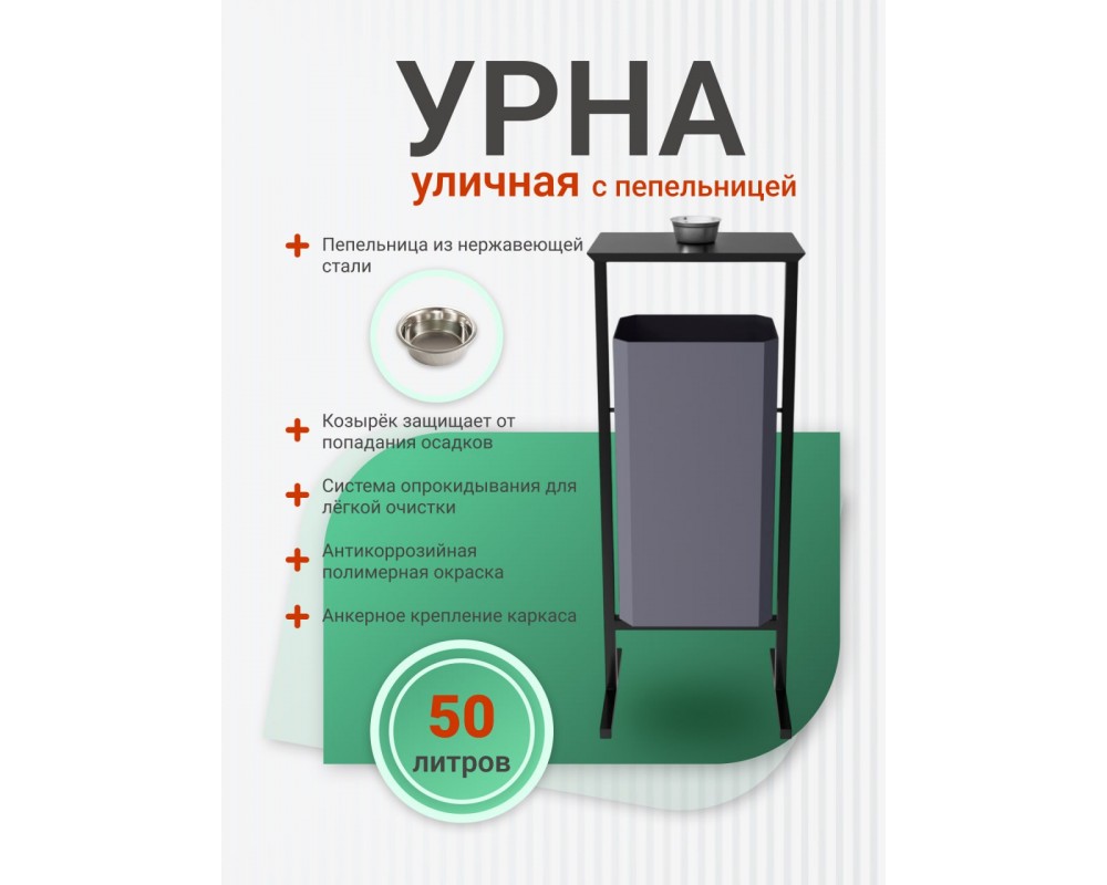 Современная металлическая урна "СТАНДАРТ 50л с пепельницей»