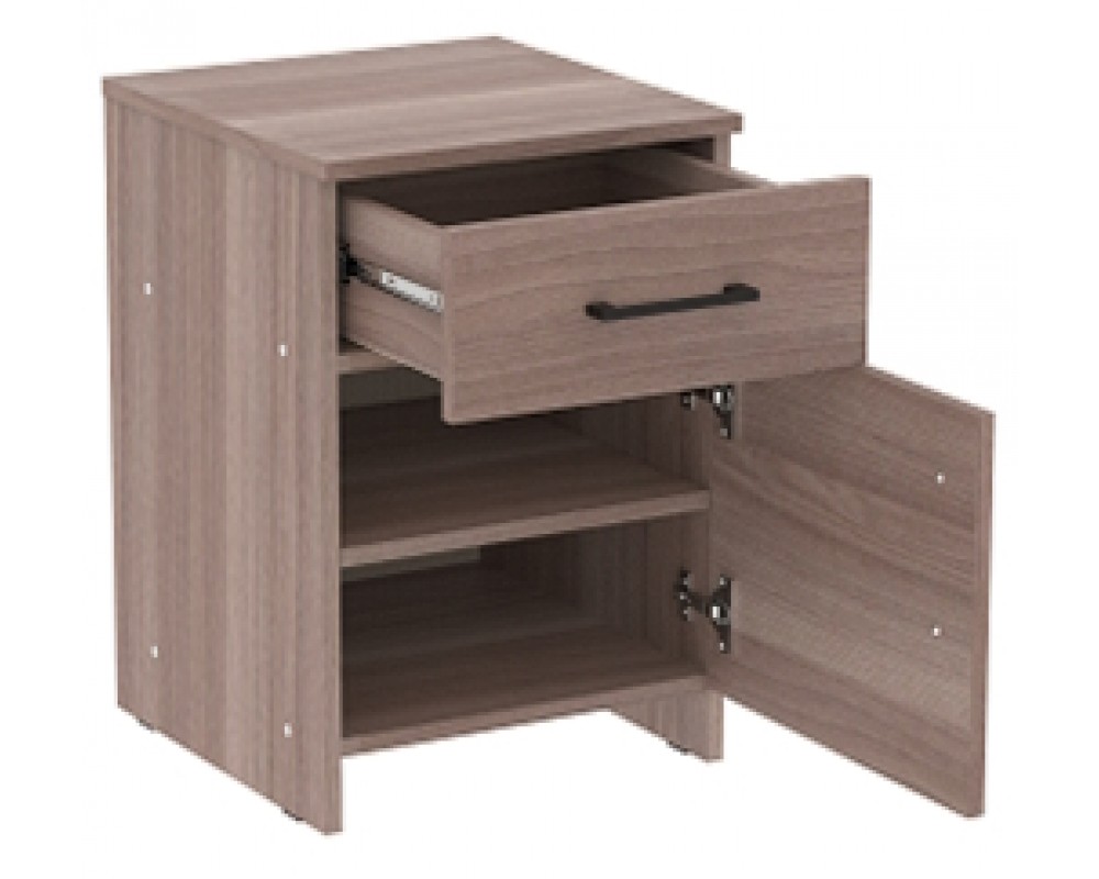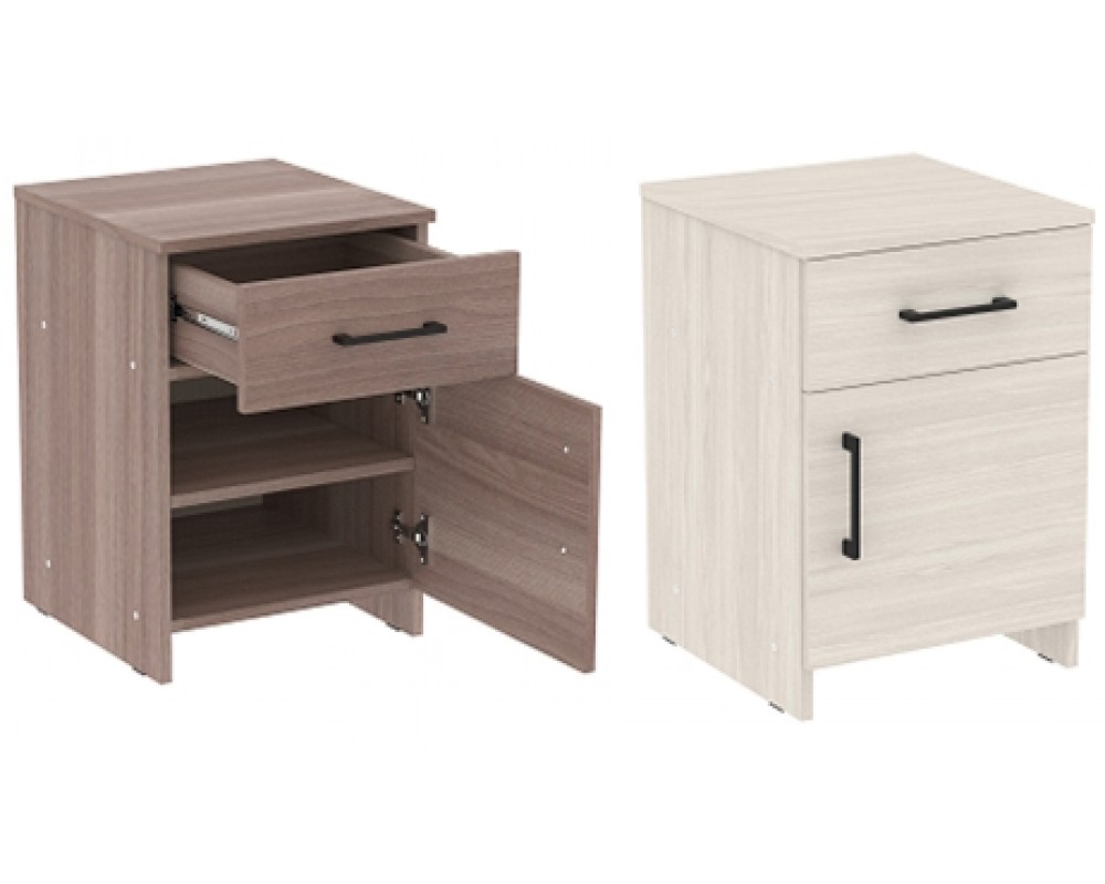 Тумба прикроватная с 2 полками и выдвижным ящиком, изготовлена из ЛДСП 16 мм, кромка 0,4 мм. Поставляется в разобранном виде, в картонной таре.