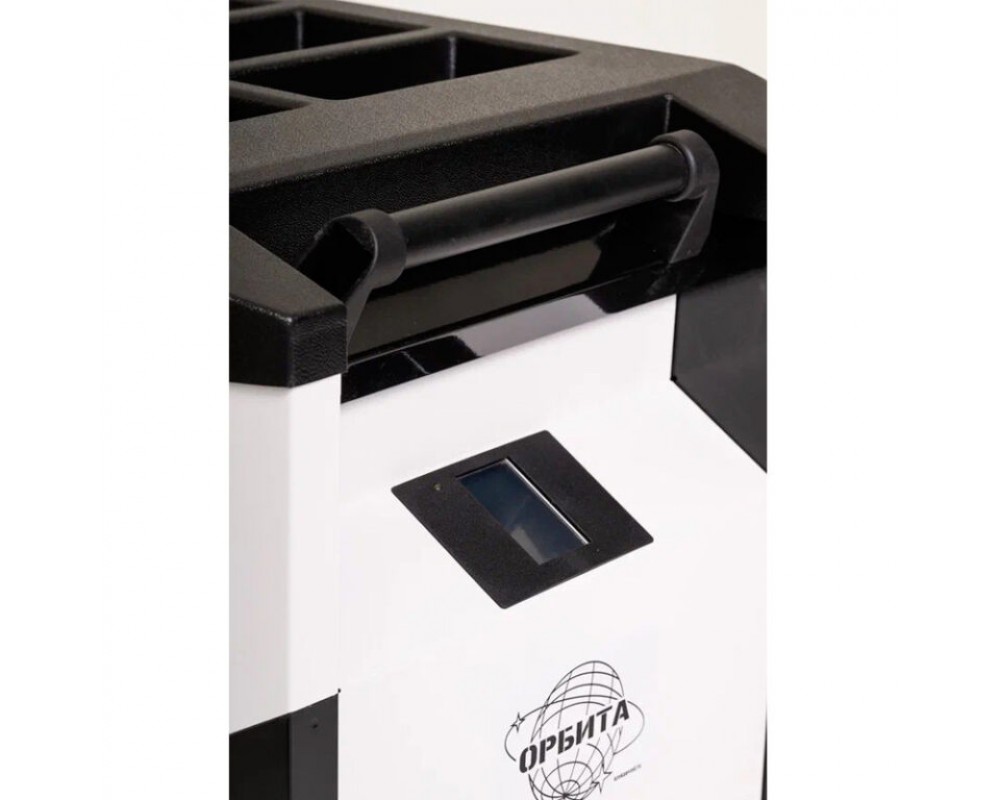 Внутренне отделение корпуса тележки для ноутбуков «ОРБИТА» разбито на 2 отсека. В левом отсеке располагаются регулируемые полки с пластиковыми ложементами для размещения ноутбуков (максимум по 8 ноутбуков на каждой полке), с шириной ячейки 38 мм. Средняя и верхняя полки регулируются по высоте, в зависимости от размера ноутбука, что делает тележку еще универсальнее. В правом отсеке располагаются 3 полки с пластиковыми ложементами для размещения портативных зарядных устройств (внешних аккумуляторов).