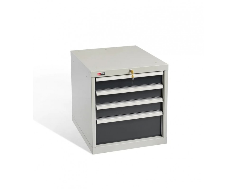 Тумба имеет 4 выдвижных ящика высотой 100 мм и 200 мм оснащены центральным общим замком EURO-LOCKS (Германия, 2000 комбинаций). Максимальная нагрузка на ящик 100 кг.