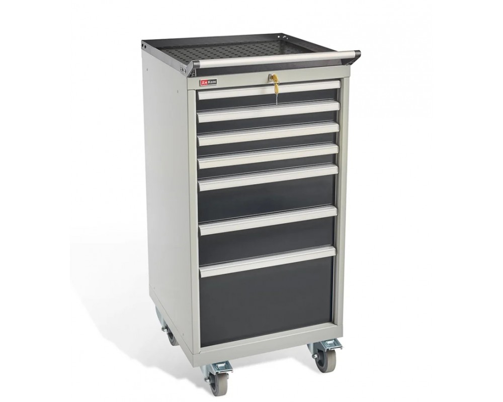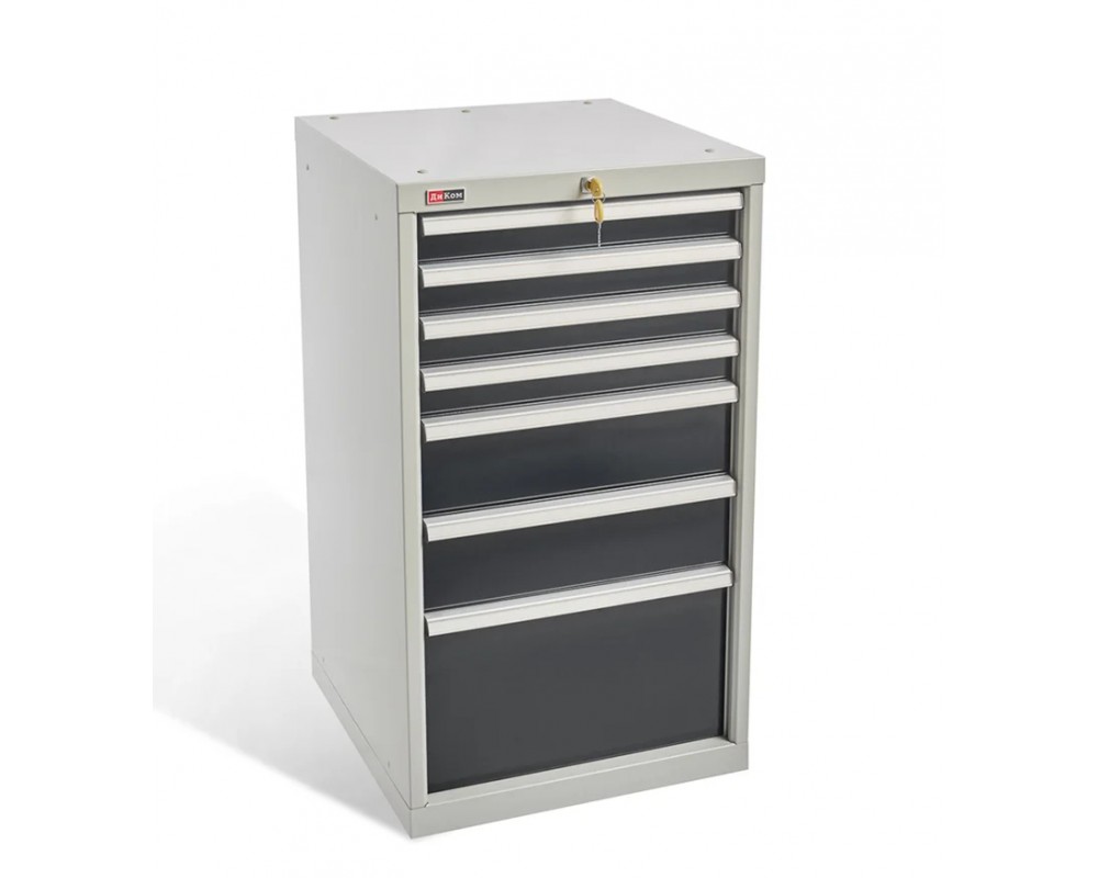 Тумба имеет 7 выдвижных ящика высотой 75 мм, 150мм и 300 мм оснащены центральным общим замком EURO-LOCKS (Германия, 2000 комбинаций). Максимальная нагрузка на ящик 100 кг.