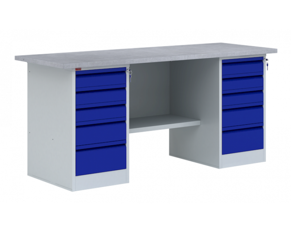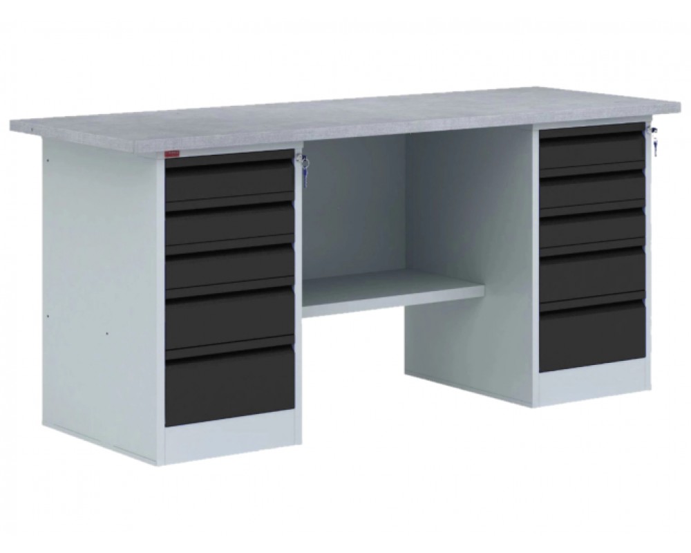 Верстак слесарный двухтумбовый ВП-6 предназначен для установки в слесарных мастерских и на промышленных предприятиях. Металлический верстак оборудован двумя драйверами с пятью выдвижными ящиками.