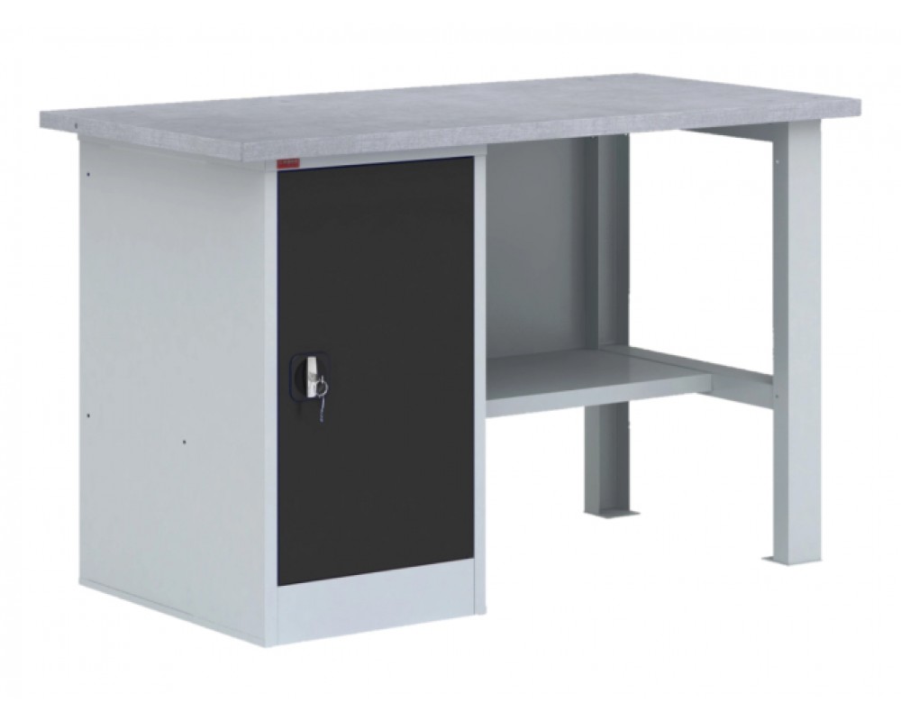 Верстак слесарный однотумбовый ВП-2 предназначен для установки в слесарных мастерских и на промышленных предприятиях. Металлический верстак оборудован запирающейся на ключ тумбой с двумя съемными полками.